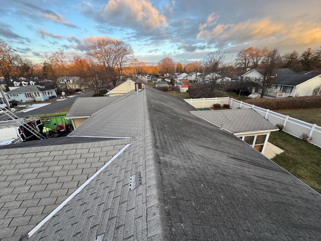 Dennis in Kingston, NY, reached out to us because his roof about 30 years old, was ready to be replaced. The existing shingles were asphalt, but underneath them was asbestos material, so before any work began, Dennis scheduled a licensed removal company to take care of the asbestos. Once that was handled and we coordinated dates with their team, we stepped in to begin the full replacement. Since the shingles were already removed, we started by taking off the old cedar shakes and installing new plywood across all the shingled areas on the main upper roof. For the flat roof at the very top of the home, we used a durable modified bitumen system to give it long-lasting protection. We also removed the iron fence that had been mounted on the roof to ensure a clean, safe surface. To finish the project, we updated the home with new IKO Dynatsy Shadow Brown shingles. The result is a fully refreshed and structurally solid roofing system, giving Dennis peace of mind and a cleaner, safer home. The Klaus Roofing Way!