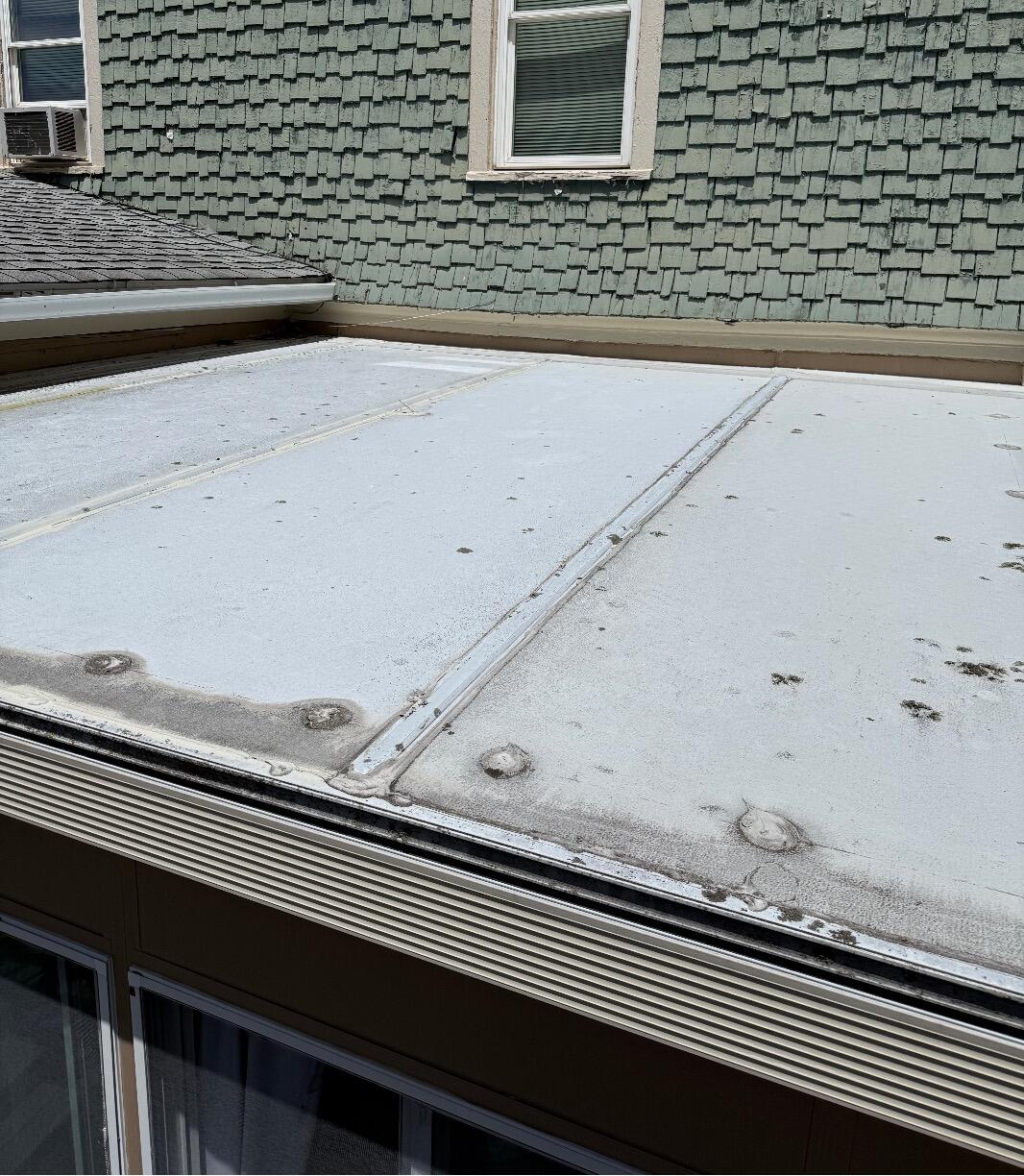 Mike in Willimantic, CT, reached out to us after dealing with a persistent leak in the small flat metal roof section over his sunroom. The roof had been in place for 27 years and was showing its age, with water making its way through seams and penetrations. Wanting a long-term solution without the cost of a full replacement, Mike called Klaus Larsen Roofing to see what we could do.