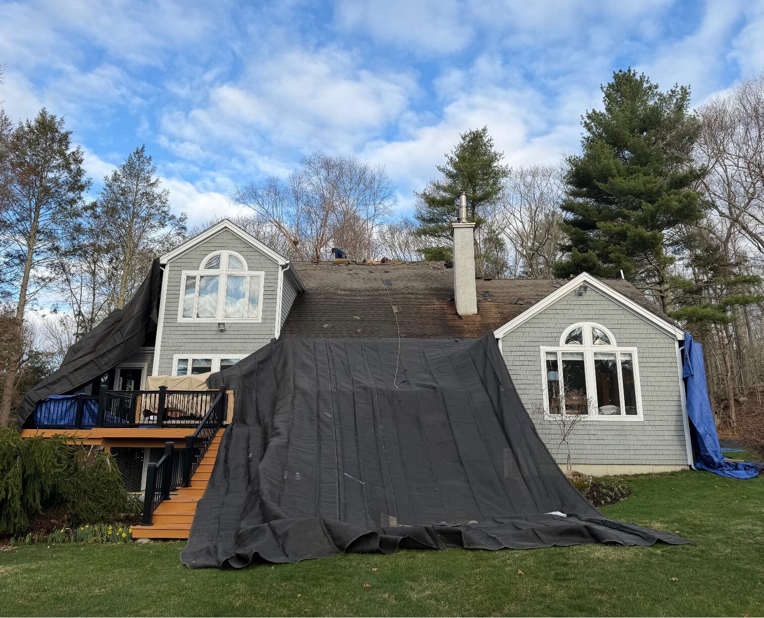These folks are new homeowners, they recently had a mold issue in their roof and were told to get a new one. The roof was 30 years old and had 1 layer of shingles. The final color they wanted was Atlantic Blue shingles. Klaus Larsen Roofing delivered!