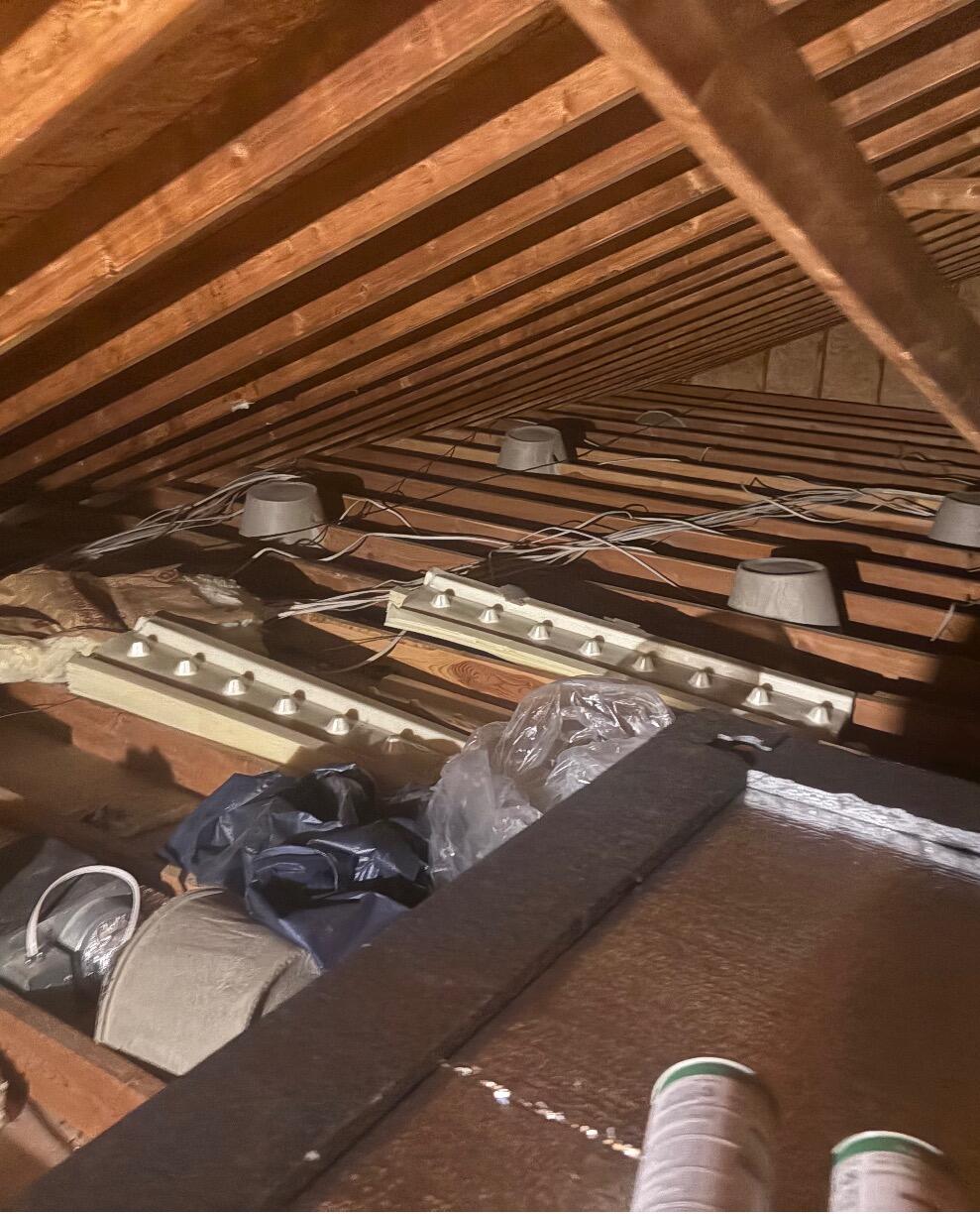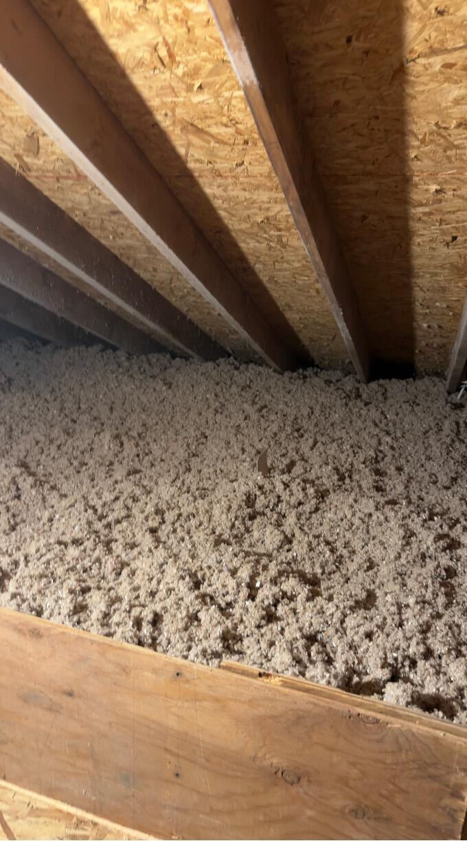 This attic was in need of more insulation so this homeowner called Klaus Larsen Roofing for a solution. We removed the old insulation and filled the attic with cellulose insulation.