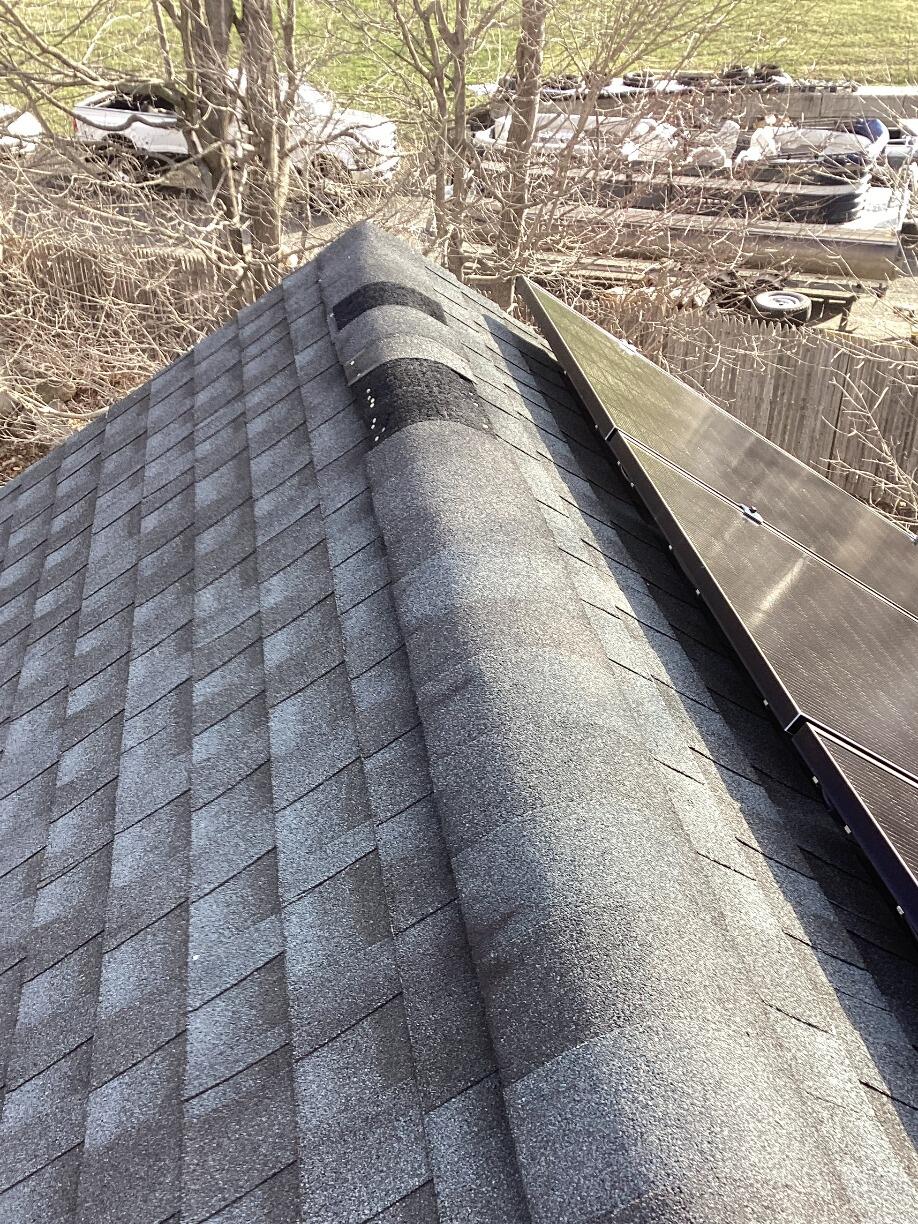 Bethlehem homeowner and returning customer Wayne reached out to Brown Roofing after a recent windstorm blew a few ridge cap shingles off his roof. Our service team quickly came out to inspect the damage and got to work replacing the missing shingles, perfectly matching his existing IKO Dynasty roof in Summit Grey. Thanks to our skilled crew, Wayne’s ridge vent is now securely capped, and his roof is back in top shape once again. Brown Won't Let You Down!