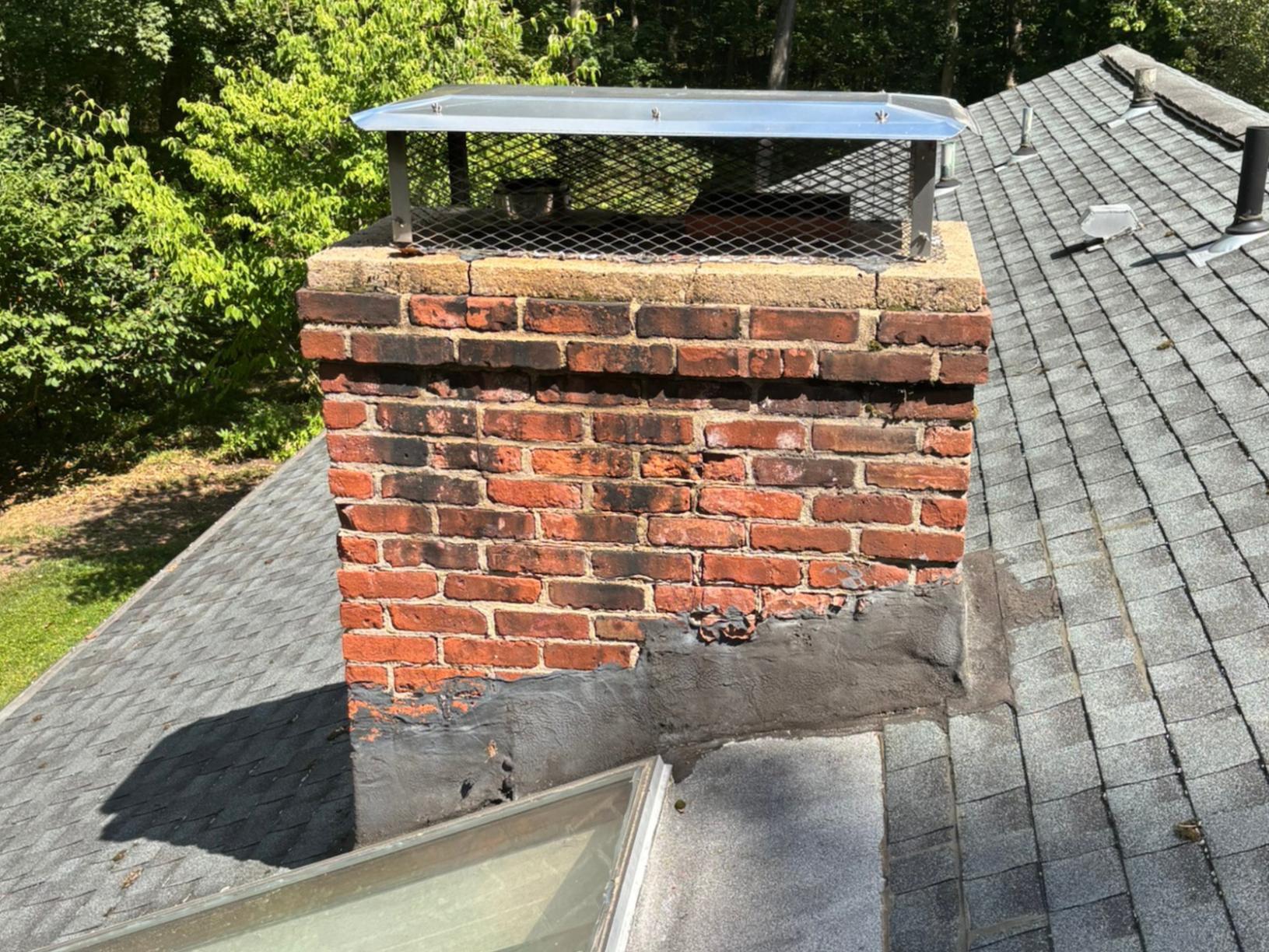 Woodbridge homeowner Helen reached out to Brown Roofing after her chimney sweep reported that her chimney was in poor condition. Inspector Dennis visited the home for a full evaluation and confirmed that the chimney needed significant restoration. Our expert masonry team got to work, rebuilding the chimney from the roofline up with new bricks, fresh mortar, and a properly poured crown. We also installed clean, durable lead flashing to replace the old, failing material and ensure a watertight seal where the chimney meets the roof. Now, Helen’s chimney is fully rebuilt, structurally sound, and looking beautiful — a long-lasting upgrade she can rely on for years. Brown Won't Let You Down!
