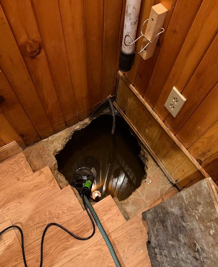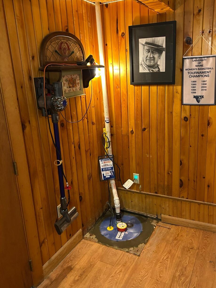Homeowners in Bangor, Maine had installed their own sump pump years ago and realized over time that they wanted a more professional system installed. We installed the SuperSump pump system, which has a 1/3 horsepower cast iron Zoeller sump pump that can handle over 2,200 gallons of water per hour. The new SuperSump system also has a lid, and is concreted in, so the owners no longer have an open sump pit.