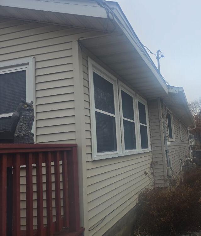 With very few trees nearby, the homeowner was sure he wanted to stick with a open-style gutter system. Kevin then drew up a proposal for our premium RainGuttersXL system. These seamless rain gutters aren't your average open-top gutters. Heavy gauge aluminum gives them unmatched strength and the squared trough design nearly doubles the amount of water it can hold. To ensure no water dripped off the side of the roof, we also added in a small deflector piece to redirect water right into the gutter. Beyond the replacement of a plastic downspout with our 3x4 aluminum, the addition of a wide mouth outlet instantly doubled the drainage capacity from the system, pushing it down into a long downspout extension that would send all of the water away from the house and into the lawn.